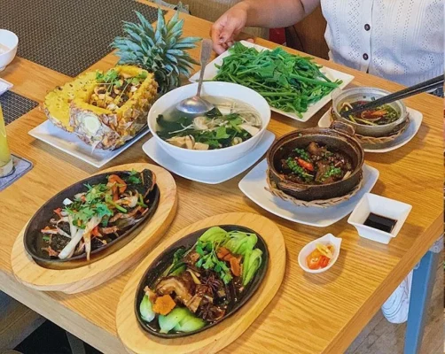 • Ẩm thực: Chuyên các món cơm gia đình thuần Việt: cá kho tộ, canh chua, rau luộc chấm kho quẹt.