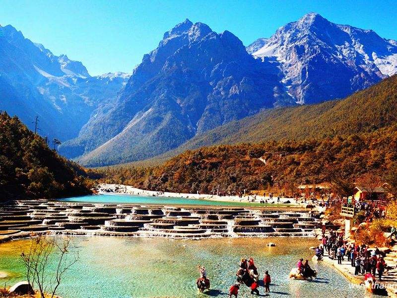 - Trải nghiệm Núi tuyết Ngọc Long quanh năm bao phủ bởi tuyết, dưới chân núi tuyết là thung lũng Lam Nguyệt có màu xanh độc đáo, uốn lượn